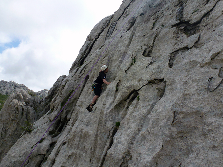 U sklopu tečaja, kretanje, osiguravanje i samoosiguranje na zahtjevnim klinčanim putovima, naročito na lokacijama i u vrijeme kada staza zahtjeva kretanje u suhoj stijeni jedan je od sastavnih dijelova ove planinarske edukacije. U travnju i svibnju na Okiću i na Paklenici, izvedenu su tri jednodnevne vježbe tijekom kojih izvedne su demonstracije i uvježbavanja improviziranog prsnog pojasa (zamka i gurtna) i povezivanja istoga s penjačkim pojasem te rješenja naveza s prusicima, kiwi coilom i ostatkom užeta u ruksaku. Korisitilo svako drvo, glondža, strmina kako bi se improviziralo kretanje i osiguravanje preko trenja (varijanta short-ropinga) te konačno i odradila i popularna „ferrata“ Žoharov put te penjanje u stijeni u visokogorskim gojzericama u sigurnim top-rope uvjetima na Paklenici. Polaznici su savladali i osnove komunikacije u stijeni te spuštanja po užetu.