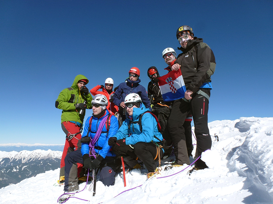 14.-17. kolovoza, visokogorski tečaj ide prema masivu Monte Rosa u Italiji. Nakon duge i naporne vožnje skupina stiže do alpskom mjesta Stafal te žičarom odlazi do prenoćišta Rifugio Gabiet (2.375 m). Ujutro opet hvata se žičara do Passo dei Salati (2.961 m) te predivnom alpskom stazom preko vrha Punta Indren (3266 m) i Rifugio Citta di Mantova dolazi se do baze u Rifugio Gnifetti (3.625 m). Naredna dva dana, uprkos sumljivoj prognozi, bila su prohladna ali sunčana. Snijeg tvrd, “špalte” zatvorene i naveze su popele sljedeće vrhove masiva Monte Rosa: Piramide Vincenti (4.225 m), Punta Giordani (4.167), Corno Nero (4321 m), Ludwigshöhe (4.341 m) te Signalkuppe tj. Punta Gnifetti (4.554 m). Usponom na ove četiri-tisućnjake službeno je završio terenski dio visokogorskog tečaja te je ukupno šest tečajaca zadovoljilo sve propozicije dok su ostali zasigurno stekli vrijedna iskustva i znanja.