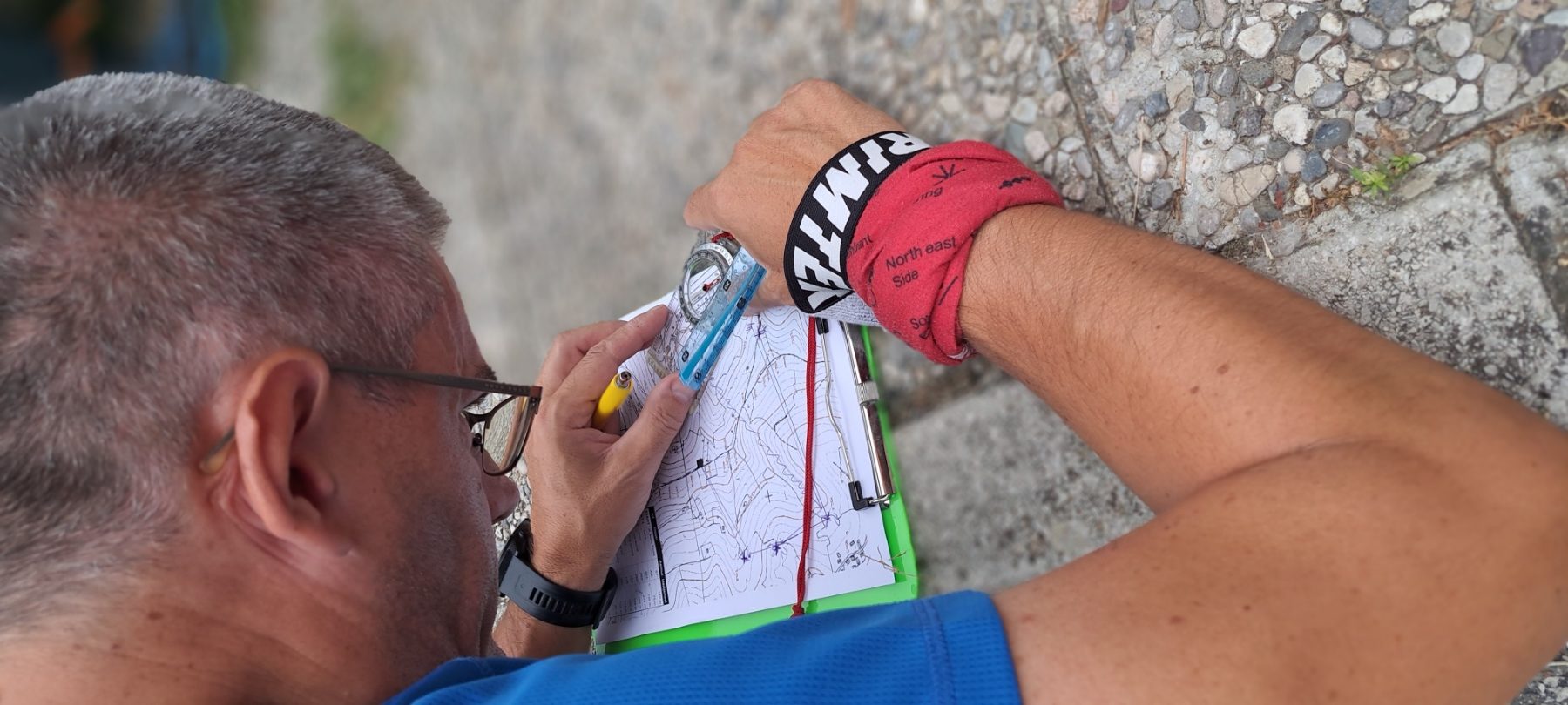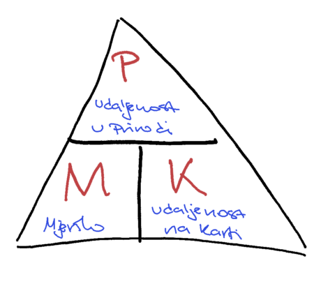 Da ponovimo kaj nam sve treba od pribora za slijedeću vježbu bar dva trokuta (ili trokut i ravnalo). Po mogućnosti da su dulji od rašpice za nokte. Kutomjer (iako je i kompas dosta za one koji znaju) je iznimno elegantno sredstvo za određivanje azimuta. Grafitna olovka uvijek je bolja o penkale. Naravno gumica. Podložak da možemo pisati i kaj je najbitnije folija u koju kartu možemo pospremiti uslijed kiše ili iznimne vlage. Navedeno je minimum, sve ostale stvari su dobro došle.