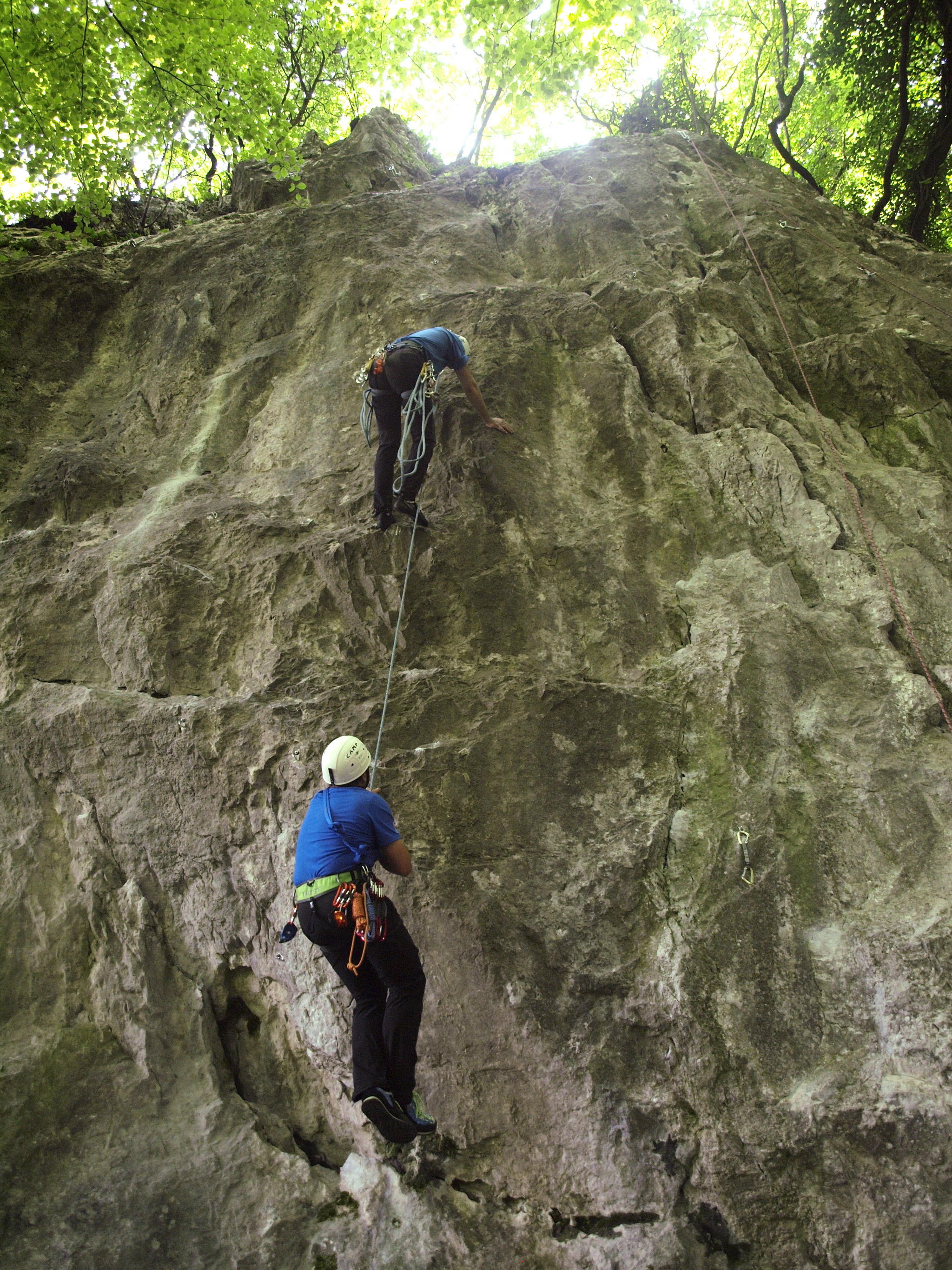 U početnom dijelu vježbe demonstrirane su i uvježbavane penjačke tehnike s posebnim naglaskom na način kako ih najprikladnije mogu primijeniti vodiči, a posebno je zanimljiv bio usporedni prikaz sustava za spuštanje i podizanje s autoblock spravicom i “klasičnog” garda-sustava, pri čemu su u stijeni praktično prikazane njihove prednosti i nedostatci. Prikazan je također način pripreme i vođenja neiskusnog klijenta na absajl, s posebnim naglaskom na sigurnosne elemente o kojima vodič treba brinuti u stijeni. Nakon završetka vježbe, druženje je nastavljeno penjanjem lakših i težih smjerova, uz primjenu uvježbanih tehnika. U vježbi je sudjelovalo ukupno 10 članova Stanice. Tijekom vježbe, vodiče je na penjalištu posjetio pročelnik SPV Zagreb Alan Čaplar.OLYMPUS DIGITAL CAMERA