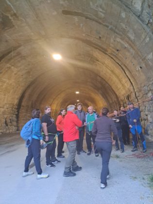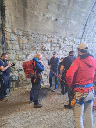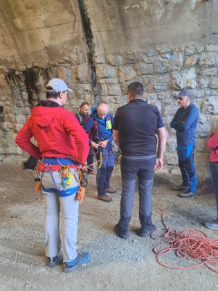 Okej. Krenimo za ozbač. Četvrtak. Prvi u mjesecu. 18:00. Tunel. Vježba. Kao i svaki mjesec. Ovaj put radili smo vježbe štrikom ili kao što naslov kaže – penjem, natežem, stenjem. Garda i Bernard na jednoj strani tunela, prusiciranje na drugoj. Prošli sve, isporobali sve. Kiša nas nije omela jer tu je naš tunel koji nam je, kao i bezbroj puta do sad, bio dom i pružio nam mogućnost da odradimo sve kaj treba. 20-tak vodiča i pripravnika pod budnom paskom dvije stare, polako istrošene, kuke, Engača i Zave odrađivali su vježbe. Imali smo VELIKU pomoć i jedne nove stare kuke, Dino Čapo, PD Pinklec. Veliko hvala Dini na svesrdnoj pomoći, iako on to još ne zna, ali gotov je, naš je, dolazil bu češće i pomagal novim vodičima. I kaj reći za kraj, niš, bila bi dobra za…cija, ali oko skolovo naše Ifke ništa nije propuštalo tako da je na kraju sve to bila samo jedna odlična vježba. Mislite da nije, bacite oko na slikice.