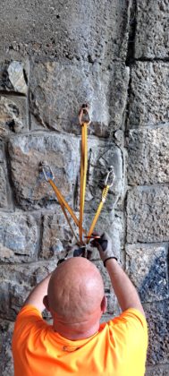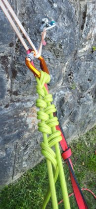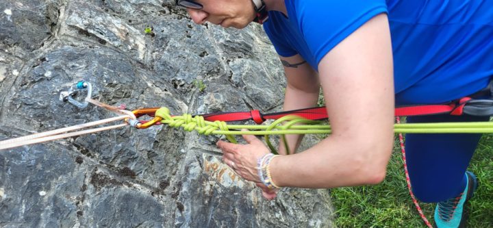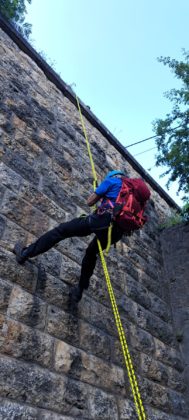 ali i visinskih vodičkih tehnika. Pripreme vođenog planinara za abseil, kontrola spuštanja te prelaska preko čvora prilikom abseila.