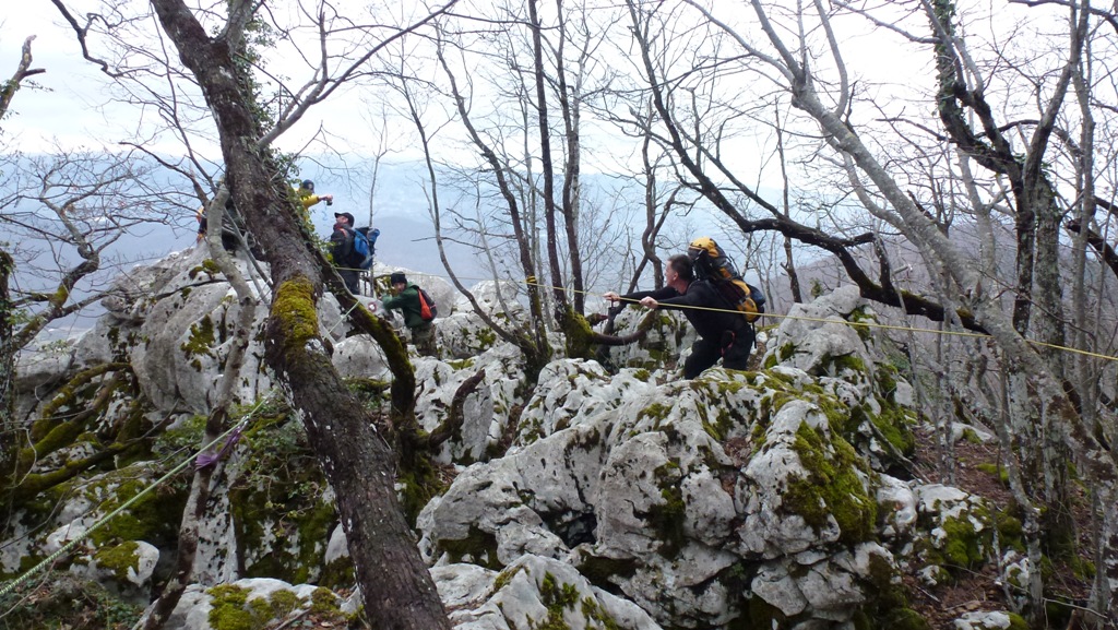P1020271U ličkom mjestu, na ličku goru, čitav pohod vodili su planinarski vodiči iz Like (uz malu pomoć tj. mentorsvo iskusnijih kolega iz Rijeke i Zagreba). Desetka HPS-ovih vodiča pratilo je skupinu te kvalitetno pripremilo stazu (postavljanje rukohvata i zaštitnih ograda od užeta na ključnim mjestima) te pružalo pomoć onim planinarima čija je kondicija zimi bila u mirovanju, a i pronašli i vlasnici vratili i izgubljenog psa.