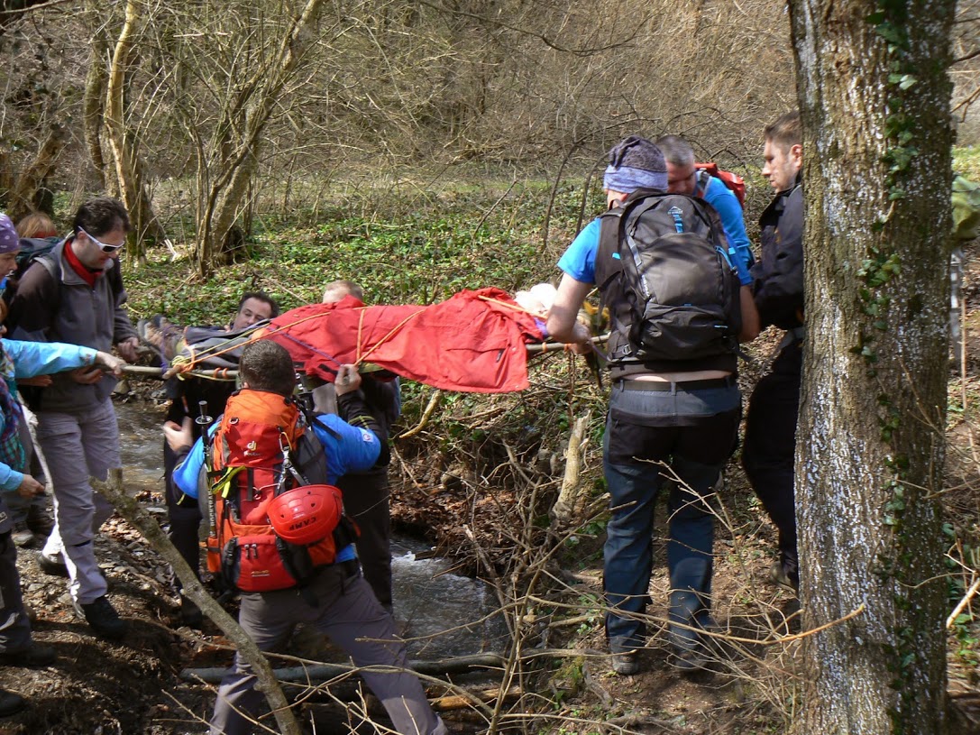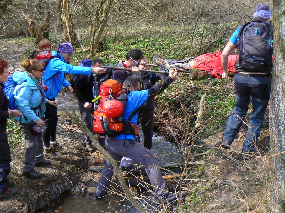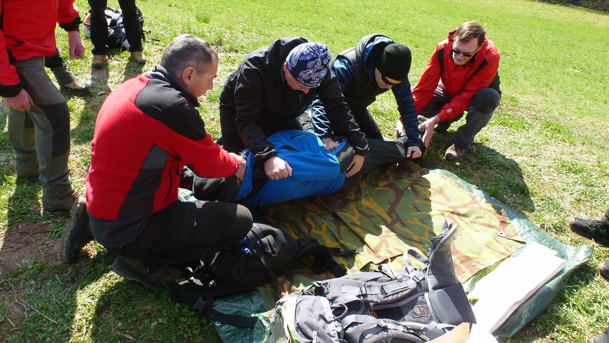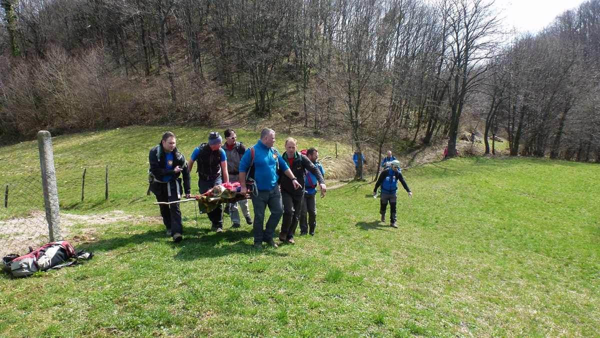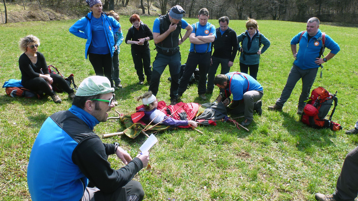 Vježba je započela ponavljanjem osnova pristupa unesrećenome i pružanju prve pomoći za vodiče D standarda po vodstvom asistenta u vodičkom školovanju Eugena Zobaja, kolege kojeg je Stanica nedavno uputila na usavršavanje znanja i vještina putom ITLS tečaja u organizaciji Hrvatske gorske službe spašavanja. Drugu skupinu, vodiča A standarda, instruktori Alan Čaplar, Zaviša Šimac i Željko Avdagić proveli su kroz scenarij nailaska na unesrećenog planinara, zbrinjavanja i transporta na improviziranim nosilima.