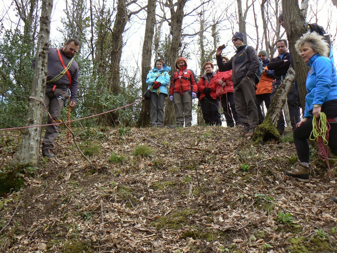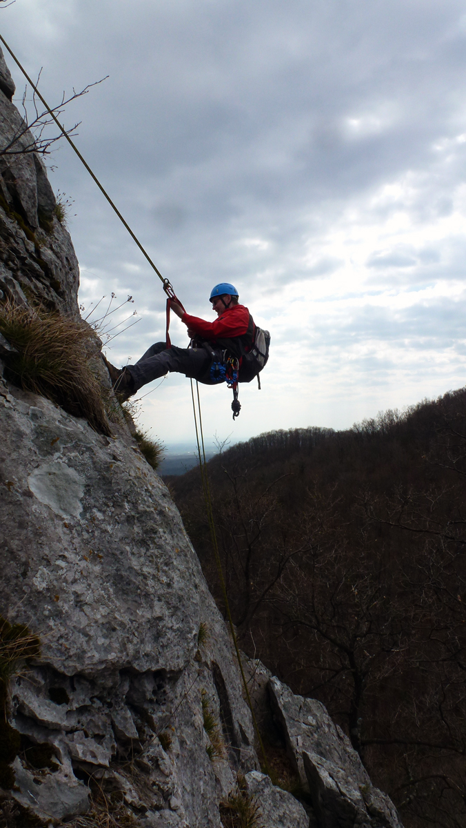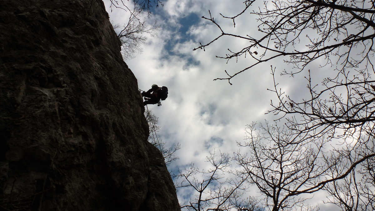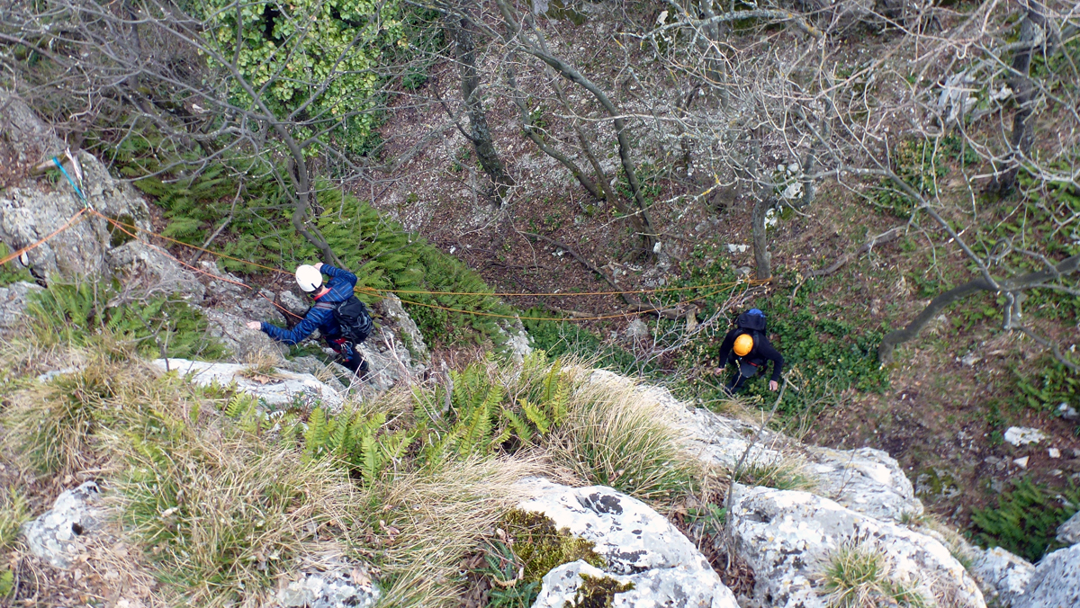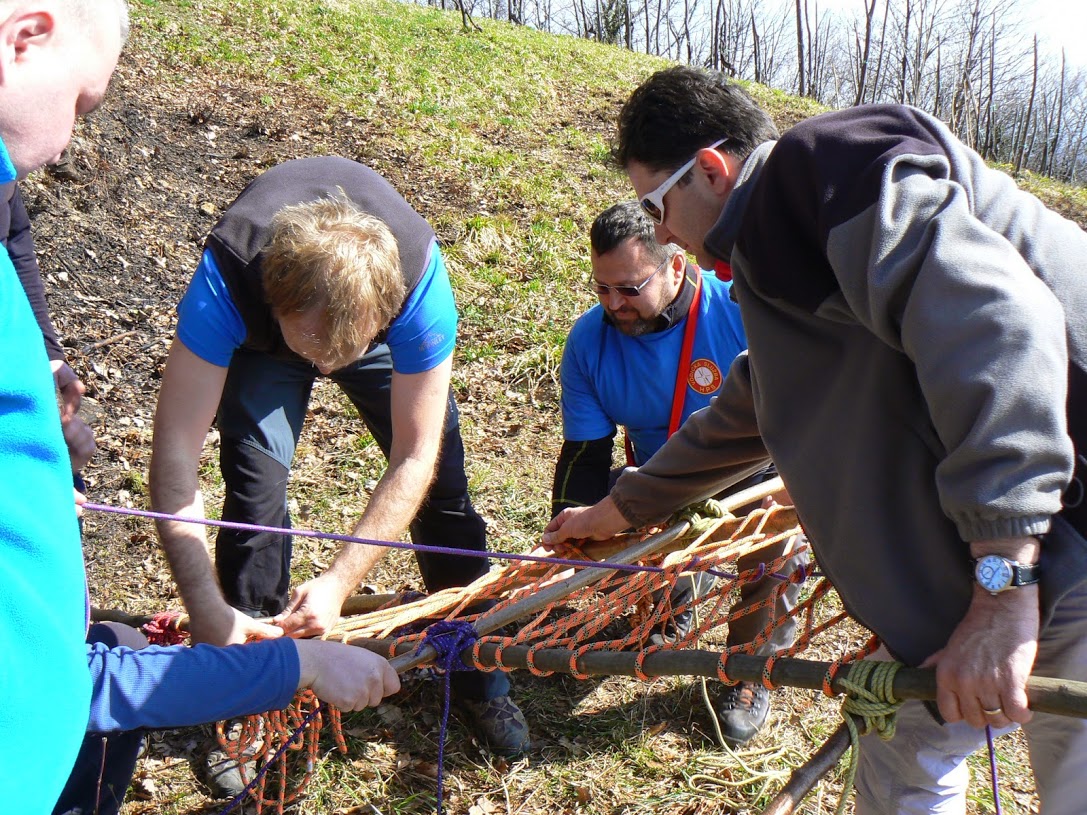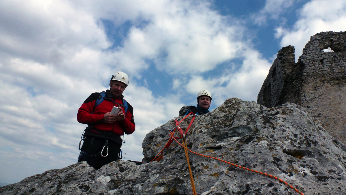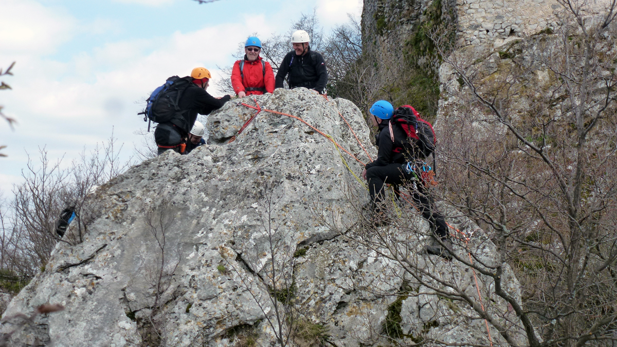 Dok su vodiči A standarda nadalje obnavljali svoje vještine iz izrade šumskog rukohvata i pomoći vođenima na strmom i skliskom terenu, instruktori Dorijan Klasnić i Davor Banić izveli su vježbu prolaska po zahtjevnom planinskom terenu na grebenu Okića. Osiguravanje s i bez postavljanja međuosiguranja u stijeni i na prirodnim sidrištima, izrada i uklanjanje stijenskog rukohvata u relanoj situaciji i sigurnosni aspekti rada na stijenskom poligonu bile su teme koje su dvije skupine obrađivale krećući se u suprotnim smjerovima grebena. Ivanka i Tomislav Jakopec bili su zaduženi za abseil poligone na zubu i prevjesu na kojima su vodiči prvo upoznati s procedurom a nakon toga samostalno izrađivali abseil pistu.