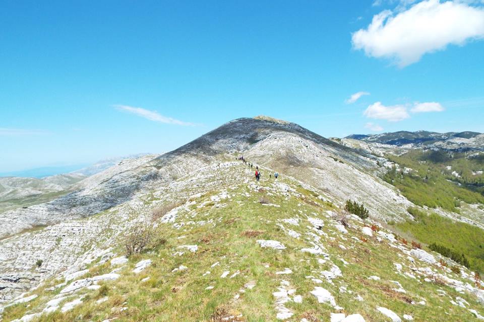 Prvi dan na praznik Tijelovo autobusom smo se dovezli do jezera Peručka jezera i mjesta Ježević odakle se markiranim putom ide na V. Duvjakušu. Uspon je usklađen s PU „Dinaridi“ koji je organiziralo logistiku i osigurao mjesto za noćenje u planinarskoj kući „Pume“ (1625 m). Prvih 3 km ide se po kolnom putu kroz nisku šumicu a zatim se markacija polako uspinje kroz kamenjar i šumu do 1200 m. Dalje slijedi hod otvorenim prostorom Dinare s prekrasnim vidicima na jezero Peruča i planine u vidokrugu. Na putu do kuće „Pume“ dočekala nas je logistika PU „Dinaridi“ i vozila HGSS-a pa su pojedinci nadopunili svoje količine vode, a i ponuđena domaća panceta dobro je došla. Za cijeli uspon je trebalo malo više od 5 sati hoda.