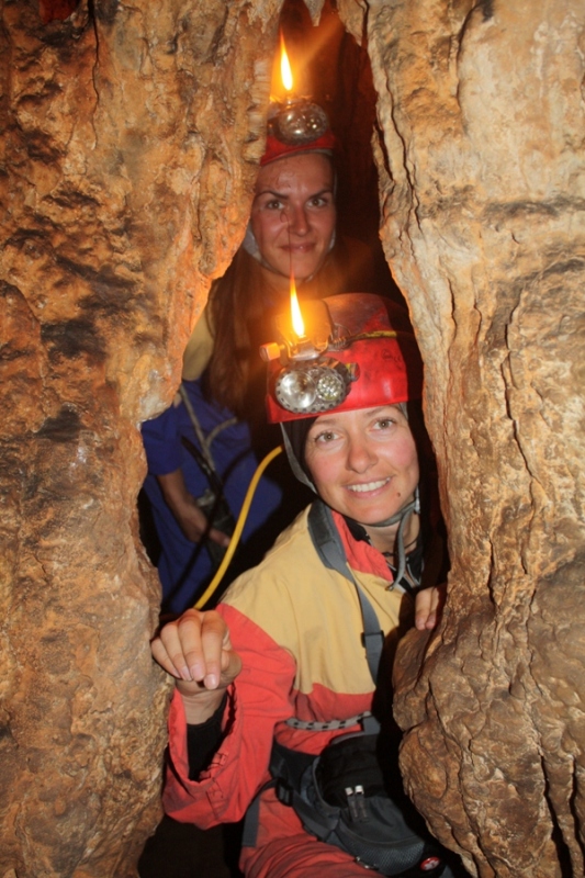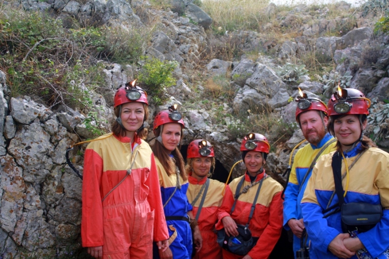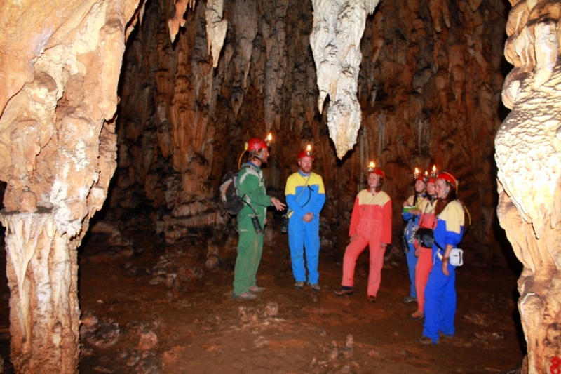 IMG_3083Za nesmetano kretanje špiljom i obilazak potrebno je odjenuti kombinezon i staviti kacigu s karbidnom lampom. Ovako opremljenu ekipu Via Dinarice, pročelnik Stanica planinarskih vodiča Zadar,  vodič instruktor i speleolog Hrvatskog planinarskog saveza, Marijan Buzov, vodio je kroz hodnike, dvorane i procjepe 840 metara duge špilje prepune špiljskih ukrasa, stalagnita i stalaktita.